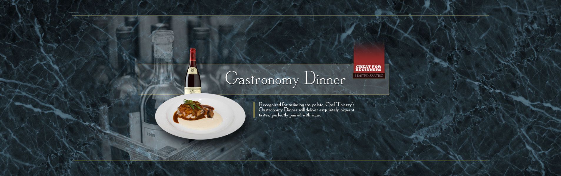 The chef will share his expertise on flavor combinations and wine pairing, putting together an exquisite meal for all his diners. This exclusive menu will focus on luscious and bountiful flavors, taking advantage of fresh ingredients at the peak of the season. For $77.94, you can indulge in a meal that’s worth much more. In addition, each Introductory Gastronomy Dinner presents a wonderful opportunity for lovers of fine cuisine to come together and relish in a shared taste for excellence.
