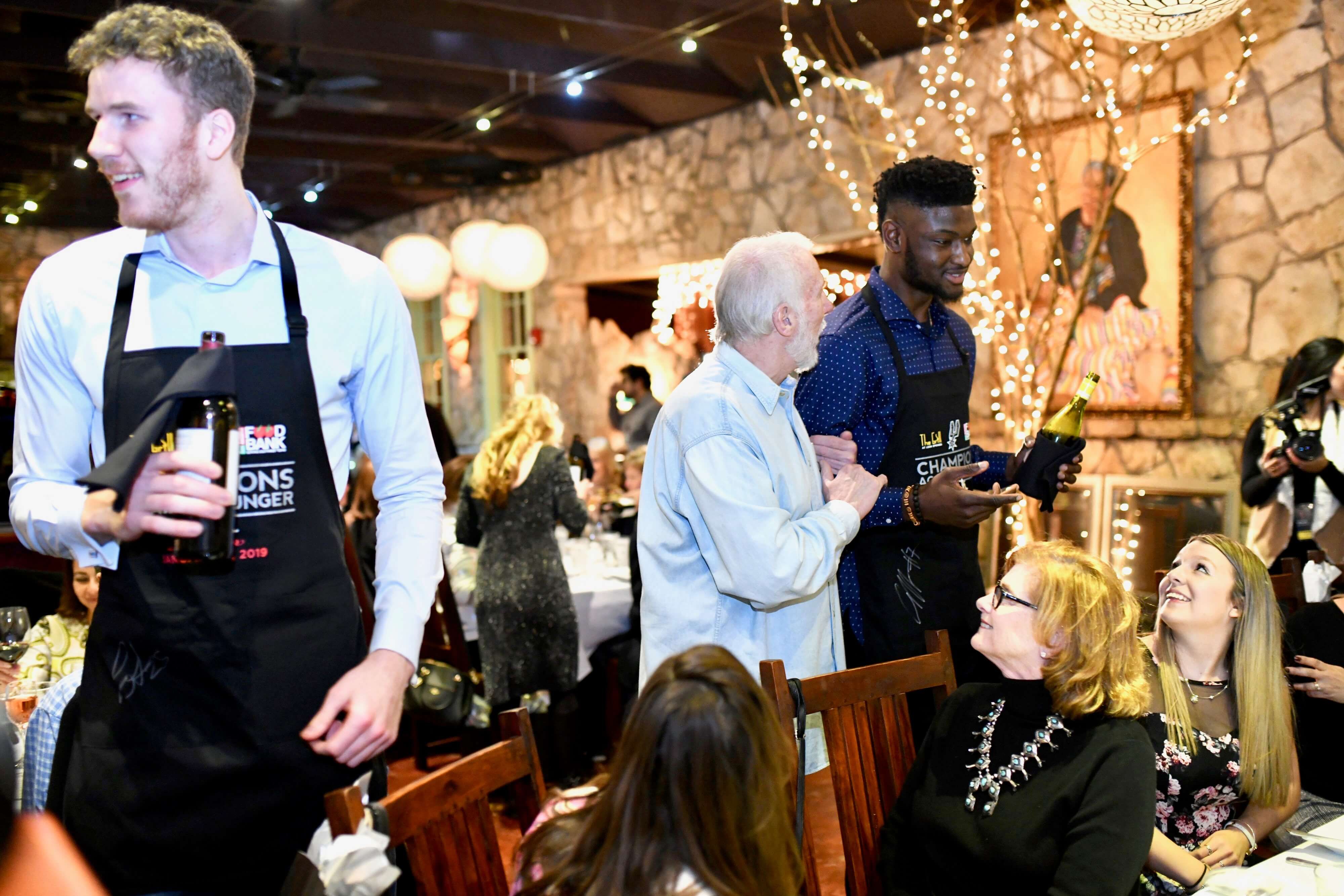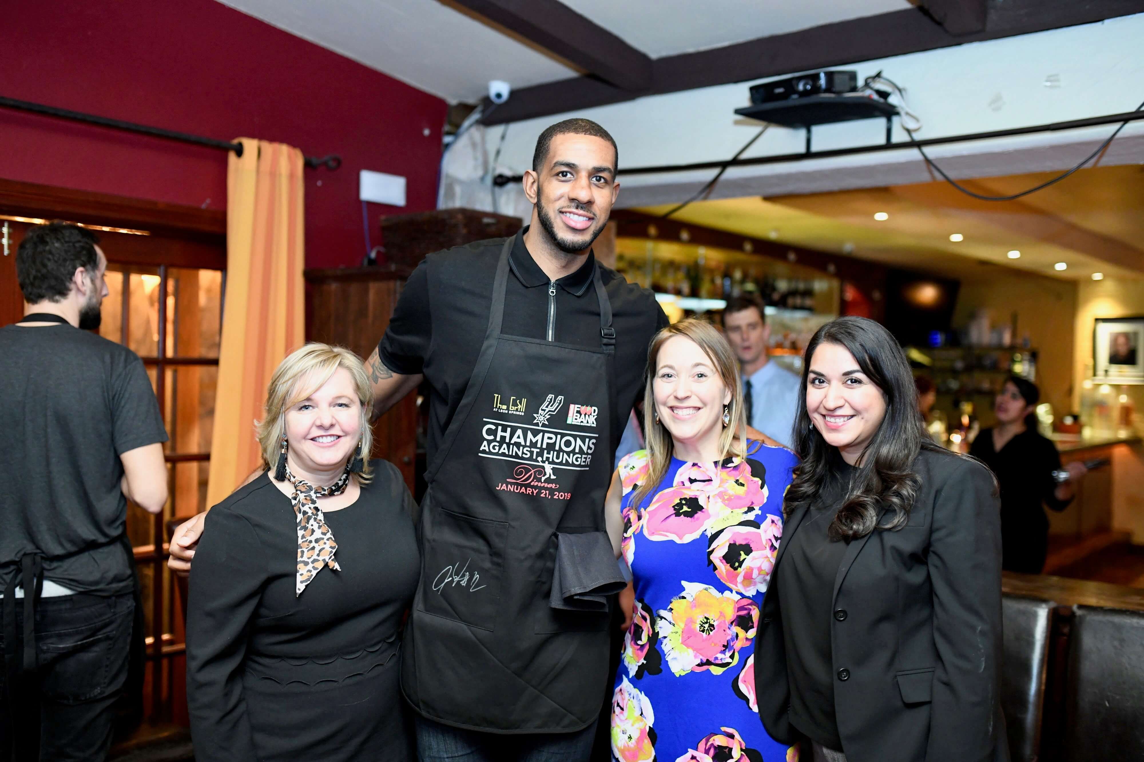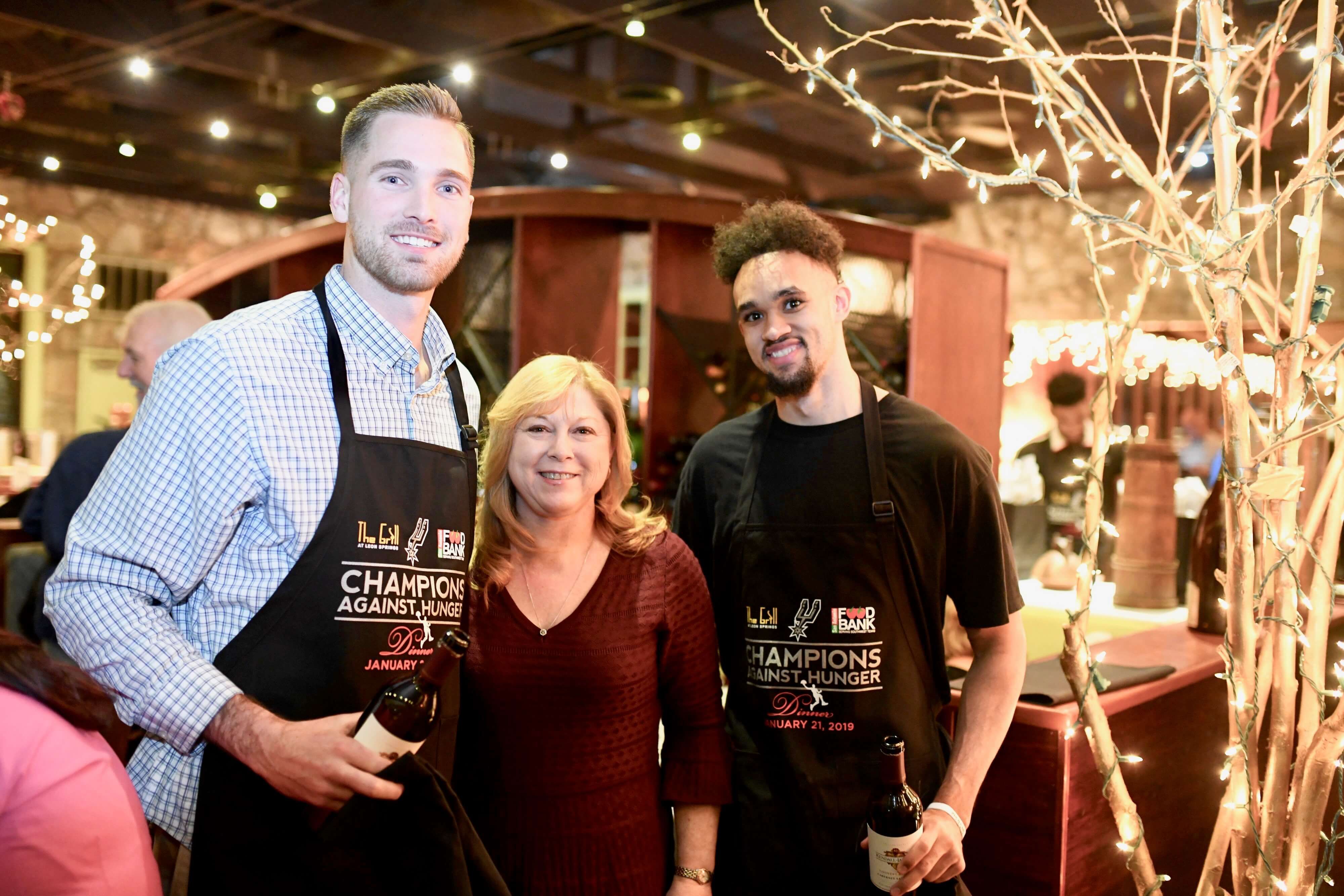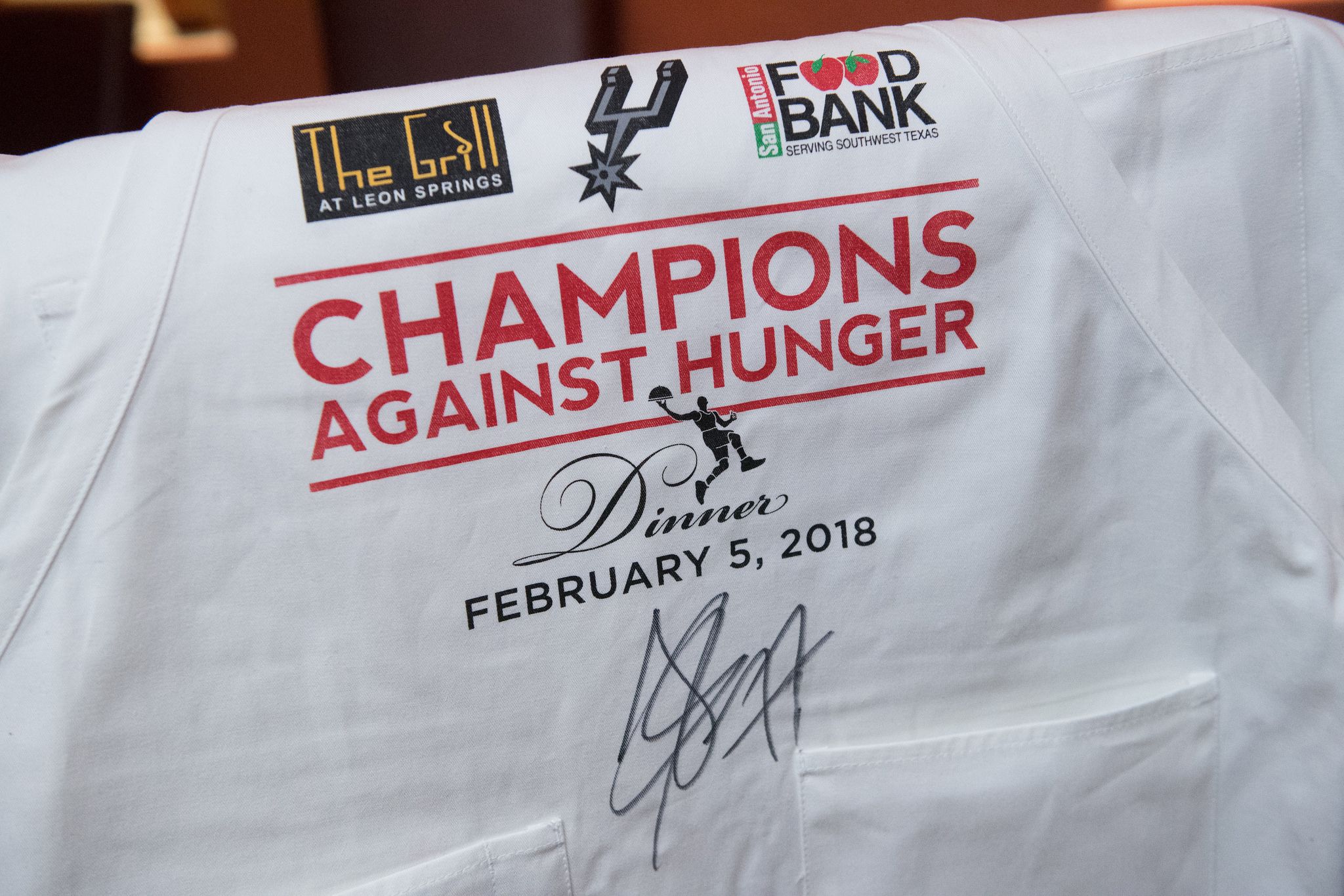 The San Antonio Food Bank’s slogan is “Fighting Hunger – Feeding Hope” and the Spurs’ coaches and players, along with The Grill at Leon Springs work toward providing that hope with their annual Champions Against Hunger event. The fifth annual dinner was served to a few hundred guests on February 7th. Hosted at The Grill at Leon Springs and catered by Master Chef Thierry Burkle, the diners enjoyed a five-course meal and a chance to visit with members of the Spurs organization. Spurs players and coaches graciously donned aprons and served the meal throughout the night. The proceeds made were donated to the San Antonio Food Bank in the hopes that more families in need are fed.